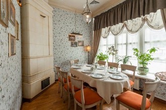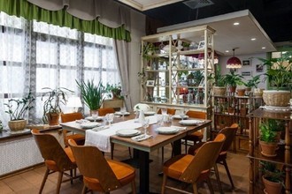 В теплый период у входа в заведение функционирует летняя веранда, с такой же уютной дачной атмосферой, как и в самом ресторане: пол из деревянных досок, плетеная мебель, ажурные занавески.